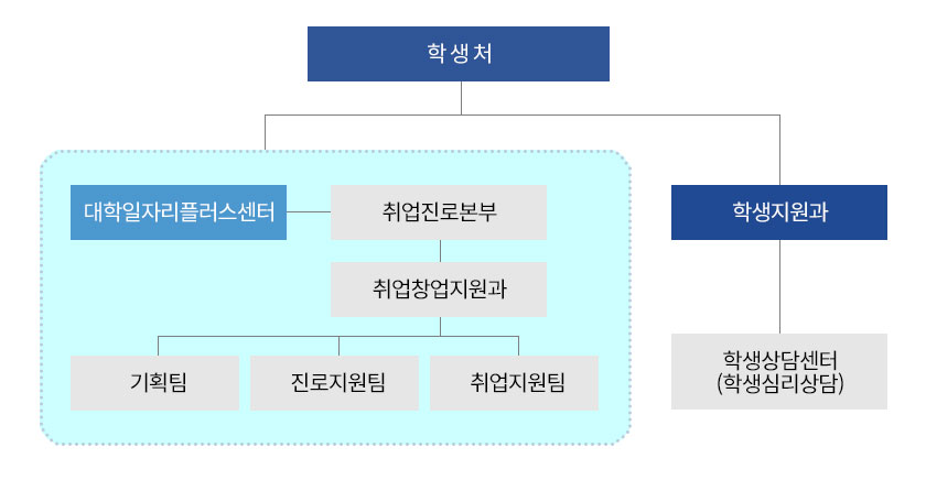 | 팀장 | 054-820-7071 | 기획팀 | • 장·단기 발전계획 추진 • 취업·진로 프로그램 기획·운영 • 취업·진로 상담 실무 총괄 • 대학일자리플러스센터 실무 총괄 • 대내·외 협력(지역거버넌스) • 취업교과목 운영 • 고시원 업무 실무 총괄 |