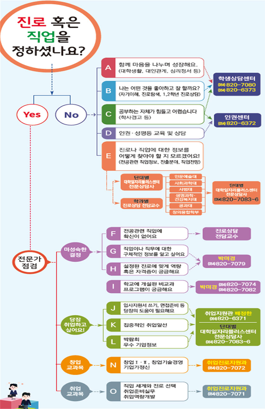 - 대면 : 상담 예약 후 대학일자리플러스센터 방문 오프라인 상담